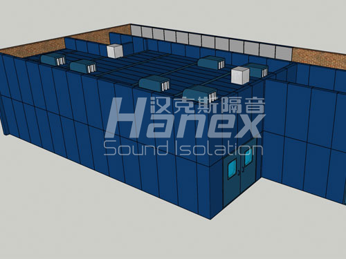 該方案,簡單來說,就是將設(shè)備關(guān)在一個兩層盒子內(nèi)。以使噪聲穿透兩層大隔音量的針對設(shè)計的隔音板后,能量大大減小,傳播至控制室時,噪聲以明顯減弱,聲級降低至60dB以下。以達(dá)到降噪要求。