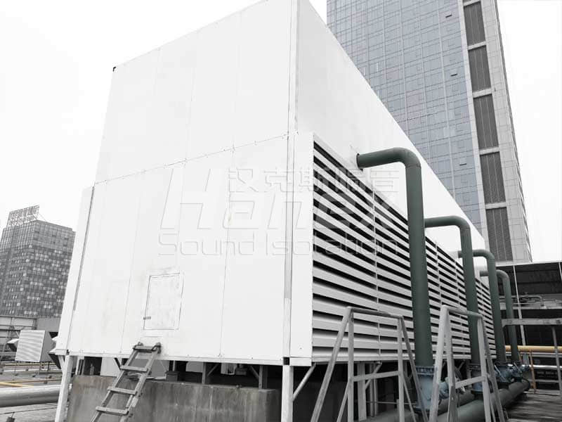 1、經過漢克斯隔音技術人員現場踏勘及結合業主所提供的資料,裙房屋面上T4冷卻塔設計安裝隔聲棚。