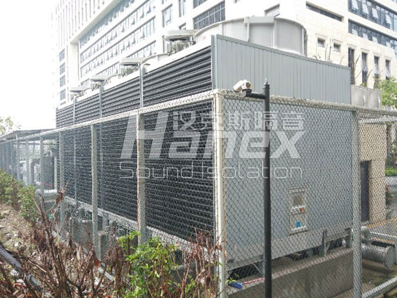 2.冷卻塔四周設置隔音屏障(底部鏤空、頂端與冷卻塔吸隔聲板封堵);