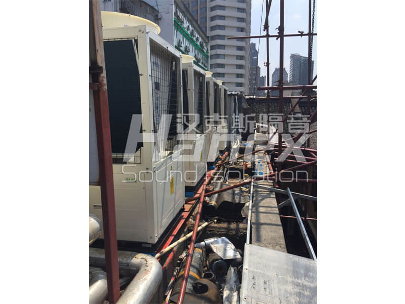漢庭酒店(杭州西湖仁和路店)北側(cè)客房樓屋面安裝五組VRV空調(diào)主機(jī),空調(diào)機(jī)主同時(shí)運(yùn)行時(shí)噪聲值可達(dá)到75~80分貝。在設(shè)備的北面是居民住宅樓,設(shè)備運(yùn)行對(duì)該區(qū)域居民聲環(huán)境產(chǎn)生一定的影響,同時(shí)對(duì)相鄰的客房樓產(chǎn)生噪聲污染。